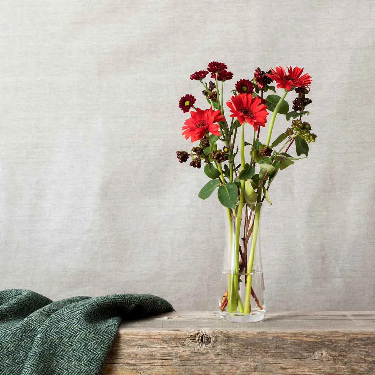 This slender crystal vase is the perfect complement to a handful of bluebells. The neck has been designed to give a little extra support to these fragile flowers.