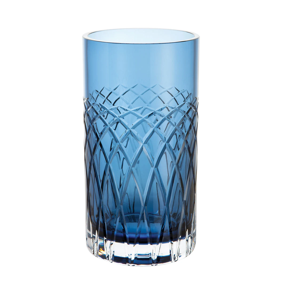 The Medium Ink Blue Cylinder Vase, a stunning addition to the Harris collection. Handcrafted in England by skilled artisans, this vase exemplifies the timeless elegance and impeccable craftsmanship that have become synonymous with the Royal Brierley name.