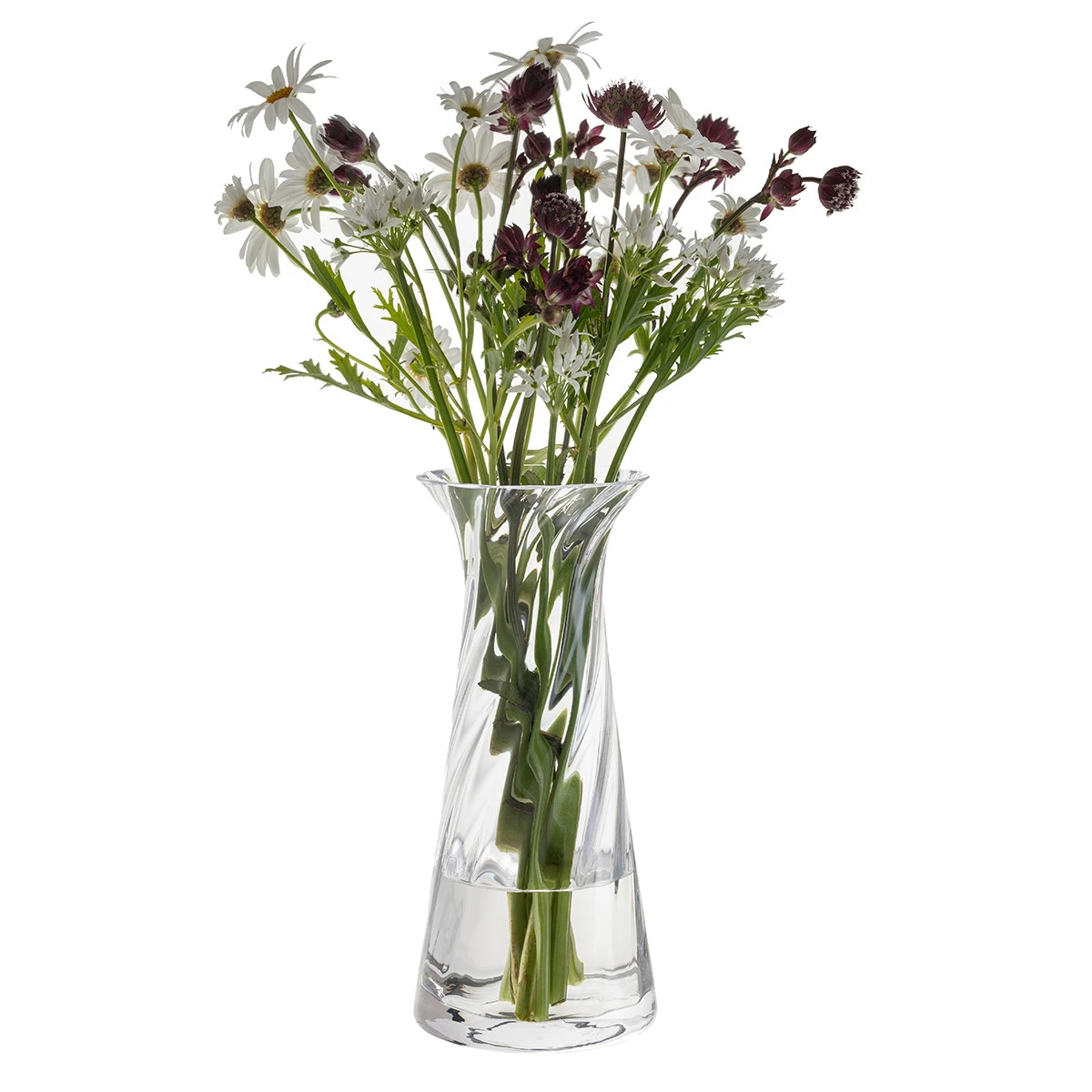 The Ripple Conical Vase brings contemporary elegance to the Dartington Ripple collection. Sustainably handmade in Devon from lead-free crystal, this vase is crafted using electric furnaces and shaped with precision by skilled artisans. Its tall, tapered form is complemented by the collection’s signature twisted optic design, which catches and reflects the light to create a sparkling display.