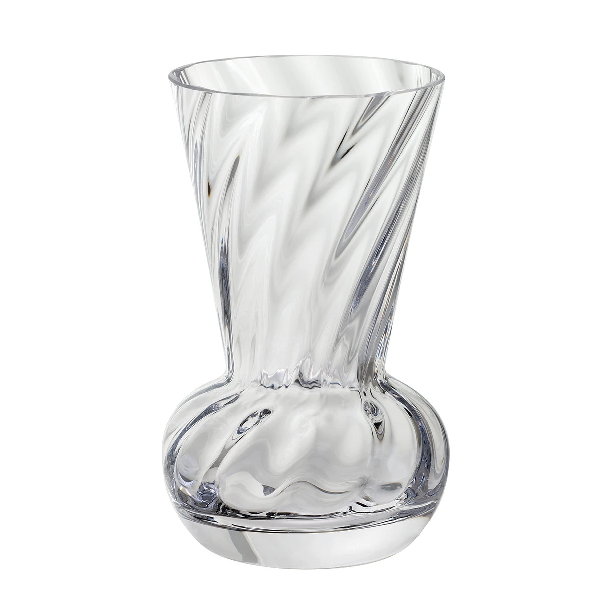 The Ripple Funnel Vase is a striking addition to the Ripple collection, designed to bring style and sophistication to any home. Handmade in Devon using sustainable electric furnaces, this vase is crafted from lead-free crystal and showcases Dartington’s distinctive twisted optic design. The swirling pattern enhances the natural brilliance of the crystal, creating an elegant sparkle that elevates any display.